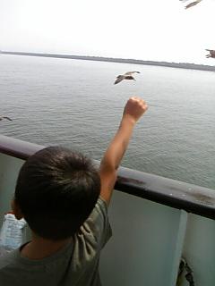 遊覧船に乗ってとってもうれしそうなP君・・・。
