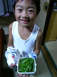 何をそんなに喜んでいるかというと・・・そうです!P君が育てた‘枝豆‘ちゃん