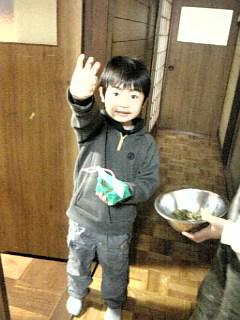P君は、「鬼は〜外!福は〜内!」とちゃんと言いながら豆をしっかり