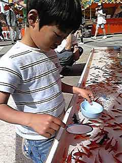 P君の目的はただひとつ・・・‘金魚すくい‘(-_-;)