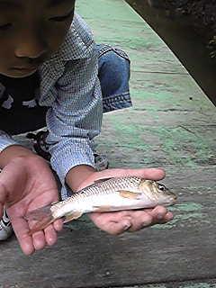 P君は釣ったことに感激で、金魚でもなんでもこい!!って感じでした・・・。