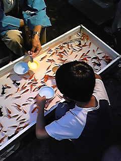 ‘お祭りといえば金魚でしょう!‘の彼には、全然聞こえていないらしく