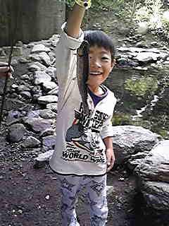 那須ハイランド内の‘救世主(釣堀)‘で、魚を釣ったP君!