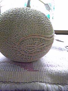 わざわざP君のために、ナマズの顔を描いて育ててくれた、貴重なメロンです!