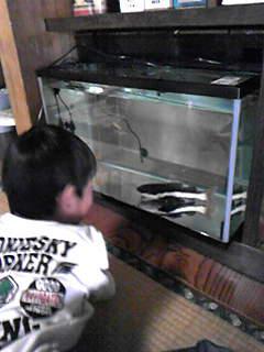 P君たら、水槽から離れることなくず〜〜〜っと見ています。