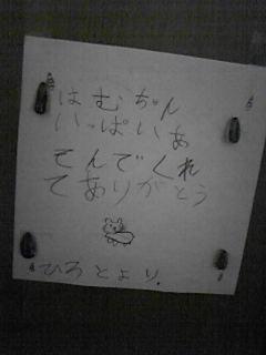 昨日亡くなったハムちゃんに、P君がお手紙を書いてました・・・。