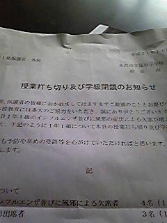 インフルエンザが、大流行中ですが、P君のクラスも学級閉鎖になりました・・。