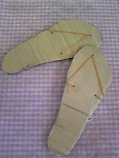 P君お手製の、ダンボールすりっぱ・・・(-_-)