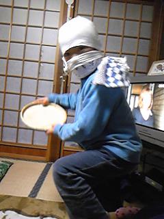 P君が、ドジョウ取りのかっこをして、歌ってました・・・(-_-;)