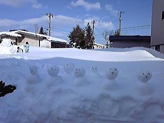おとといの土曜日、P君たちと‘ちび雪だるま‘を作ってあそびました。
