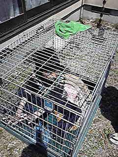 おうちわんこの‘大福‘の犬小屋を占領しているP君・・・(-_-;)