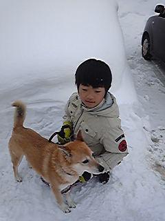 はなちゃんが雪に体をこすれば、P君もその真似をして・・・。