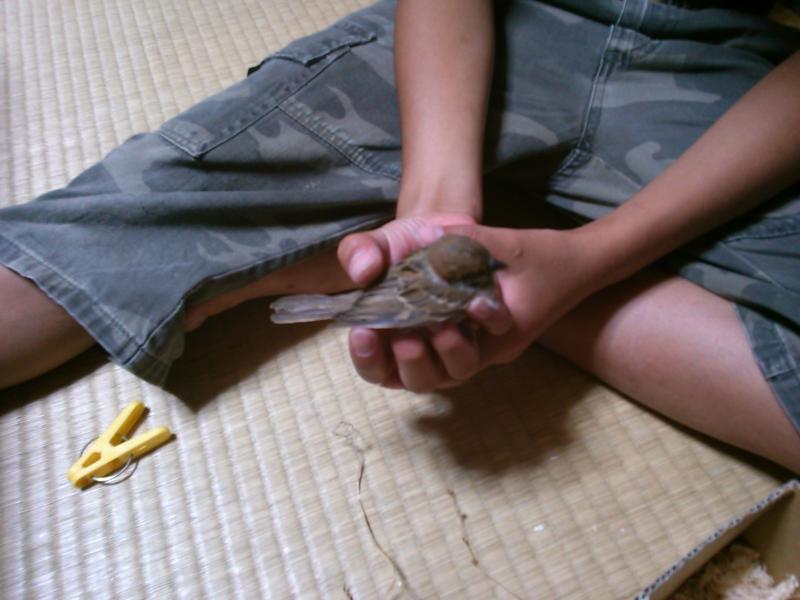 先週、P君が道にいたというすずめちゃんを持ってきました・・・。