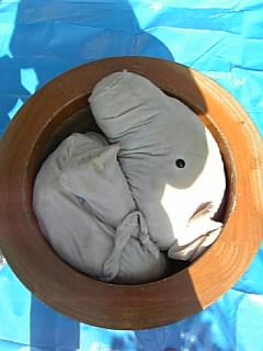 遊んでいました。かわいそうよの〜バムセちゃん!!まさか、もちの代わりになろうとは・・・・。その後、しっかり本物のもちつきは行いました。おいしかったですよ!!ちょっぴりバムセちゃんの味がした?かな?んなわけないよね!
