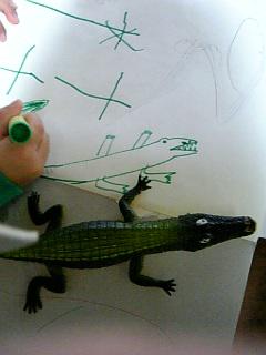 言って差し出したものはお絵かきで使っていたP君お気に入りの‘ワニ‘と‘ヘビ‘でした。