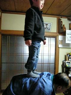 すぎ・・・。こんな遊びが毎回じゃあたいへんです。しかし、じ〜じは孫のためならと感心するほどです!かんばれ〜!!このときのP君、じ〜じの背中で歌を歌って
