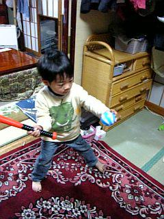 「いいか〜!これから打つからちゃんと取れよ〜!!」とぬいぐるみに言い放ち、バンバンぬいぐるみにボ〜ルを当てていました。それをかげからこっそり見ていた上の子、