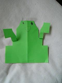 折り紙を半分にして、はさみでちょきちょき切って作りました!