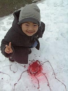 をぶちまけて、真っ白な雪が、真っ赤に染まってしまいました・・・(T_T)