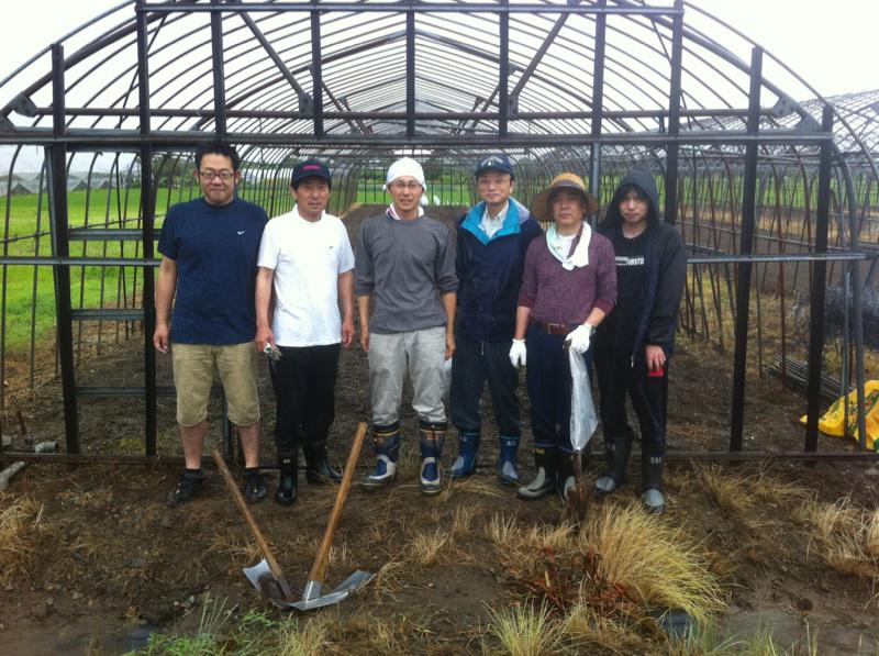 そして、会社の有志6名と興味を持っていただいた本当にお世話になっている方の手伝いのもと、雨模様でありましたが60坪ほど植えてみました。