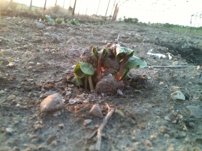 先ほど畑を見てきましたところ、しっかりと大地から芽が出てきていました。