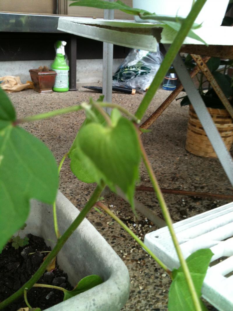 さて、我が家で5月末に植えた和綿の種ですが、すくすく成長し約50cmになっています。