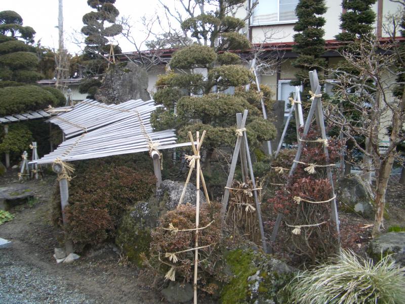 金沢の兼六園ではありませんが、雪国の芸術のひとつとして雪囲いがあります。