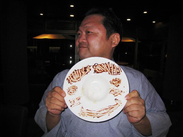 この写真のお皿にはお祝いのメッセージが書かれてありましたが、