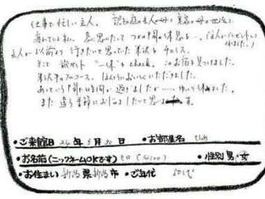 新潟県新潟市在住の ヒロ(hiro)様より手書きのメッセージいただきました!