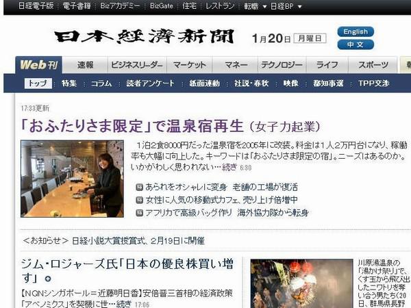 ▼【時の宿 すみれ】日本経済新聞電子版のトップページに掲載されました