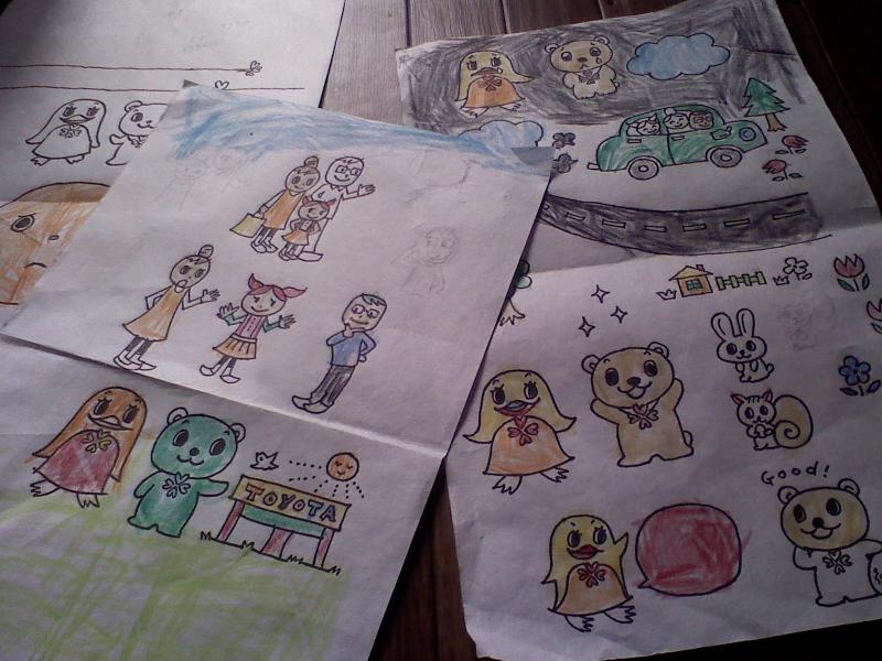 保育園から帰ってきた娘が、一心不乱に何かしてると思ったら、私が仕事で描いたイラストをぬりえにして染めていた。