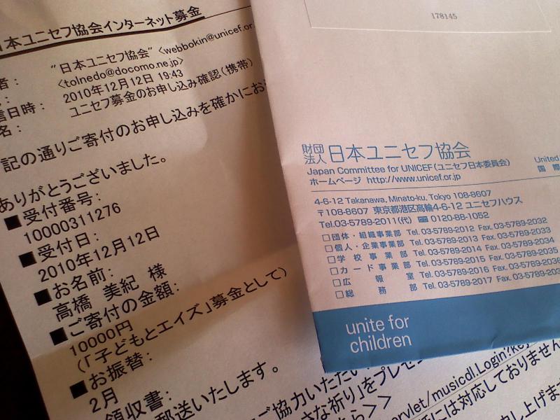 一年分まとめてユニセフの「子どもとエイズ」基金に