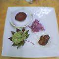 栗のしぶかわ煮 もってのほか(菊) 杉わかえのじんだ和え いちぢくのワイン煮