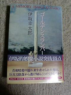 写真は最近買った井坂の新作「ゴールデンスランバー」前回のフィッシュストーリーはあまり好みではなかったけど今回のは期待大!!まだ途中だけどはまりつつあります。