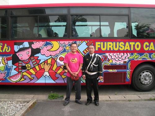 写真をお願いし、ツアーバスの前でパチリ。