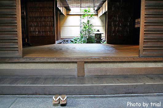 道に面した大戸を入ると「ミセ」。ミセの奥に六畳の玄関がり、背後の「坪庭」と玄関ニワは屋外空間となり、風や光を取り込みます。