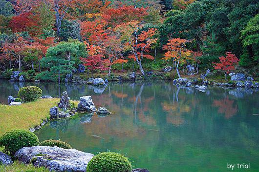 ここだけ紅葉してますが、嵐山はマダマダ色付いてません。