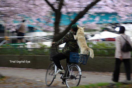 颯爽とサイクリングのお二人。 一人+ワンでした。^^