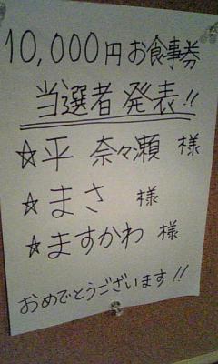 10,000お食事券の当選者が発表になりました!