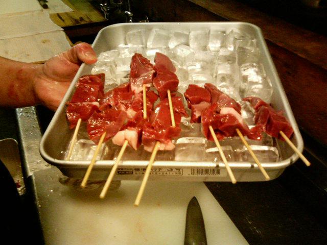 今日は内臓系が入荷。現在仕込中(写真)、余分な脂やスジを取り除き食べやすい大きさに切って串に刺します。 内臓系は今日しかなし!今晩おいしく食べていただけるよう仕込再開します。