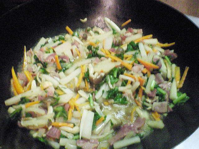 白菜、大根、人参、ベーコンをイタリアンに仕上げた御通しです。