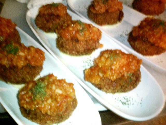 里芋のクリームコロッケ、上にのってるオニオントマトとの相性がお客様に人気。まだ食べてない方!お早めに☆
