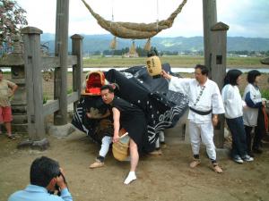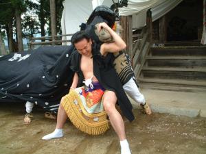 神社に入って祭礼の行列に参加するようになり、獅子の役目は露払いであり、行列の前を歩き神聖な神仏の行く道筋を払うことと、御座所を清めることだった。 |