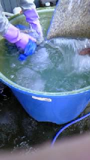 ▼冷水で冷やす