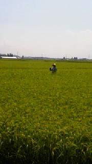広い田んぼにポツンと1人、ちょっと寂しいなあ〜!