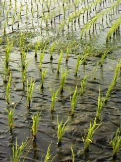 化学肥料も農薬も使っていないので、特栽米に比べ生育が少し遅れているようです。紙と紙の隙間から雑草生えはじめました。