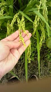 穂の長さは20cm弱で、少しずつ実っています。刈り取りは一ヶ月後位かな?