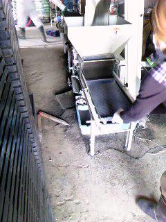 苗箱に土入れをしています。