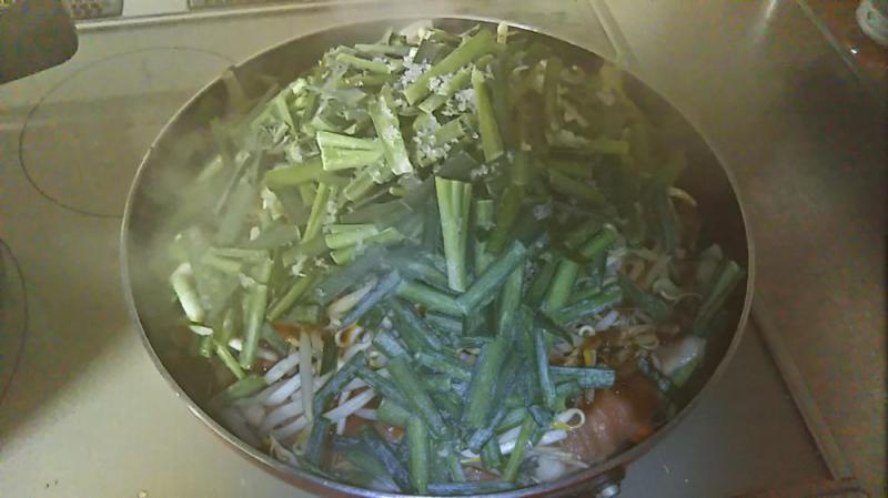 夏場に冷凍していた行者菜をたくさん入れて炒め物です