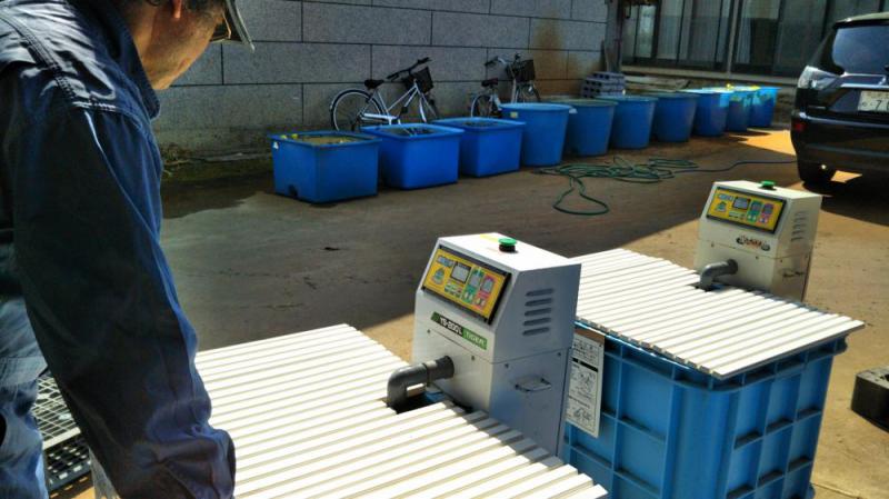 種もみを60度の湯に入れ雑菌処理をします。馬鹿苗や病気を防ぎます。